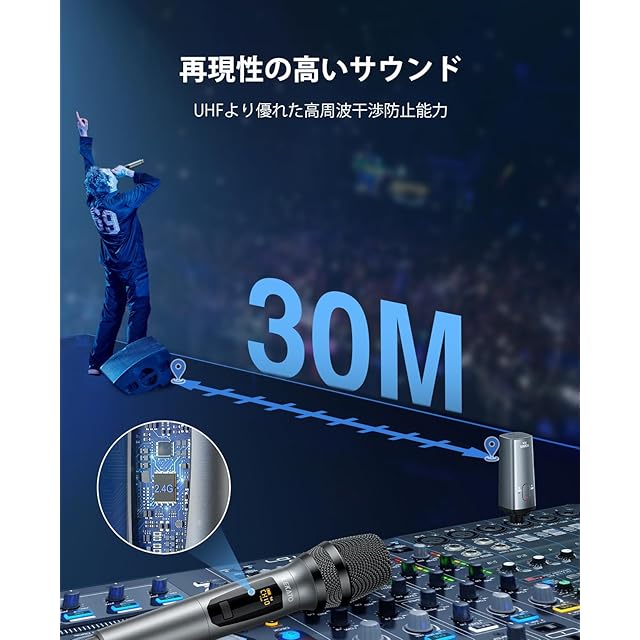 可変チャンネル:同じエリアで同時に使用するために最大4セットをサポートし(各セットは異なるチャンネルで使用)、いつでも干渉信号を回避します。 国際標準の作動距離は15メートル(30メートルで測定)です。注:マイクとレシーバーが相互に接続できない場合は、ペアリングしてリセットする必要があります。製品写真、製品説明、またはユーザーマニュアルでペアリング/リセットする方法を参照してください。