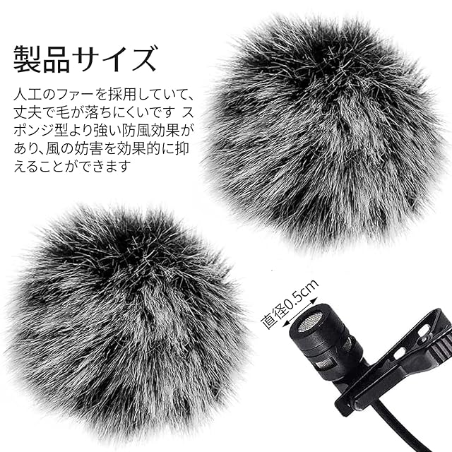 風防 マイク ヘアリーウィンドスクリーン ラベリアマイクロホン 2個入り マイクスリーブ インタビューマイクスリーブ 雑音低減