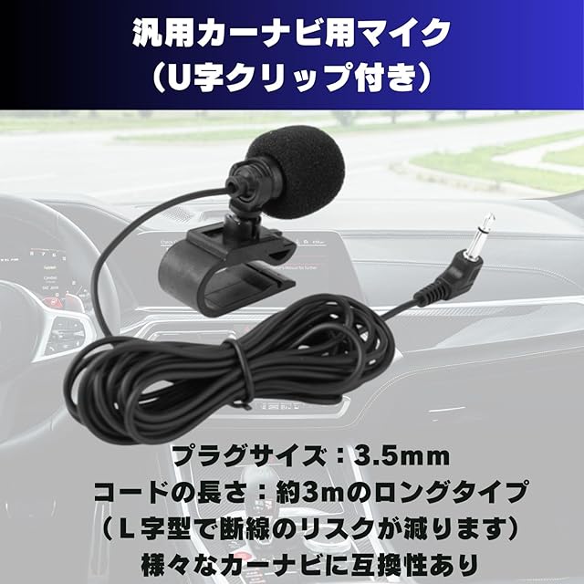【サイズ】プラグ:3.5㎜、全長3m、マイク部分:2.5×1.5cm、クリップ部分:4.5×3×1.2cm 説明書および取り付けサービスは付属しませんので、専門業者にご相談ください。モニター環境によって商品の見え方が異なる場合があります。