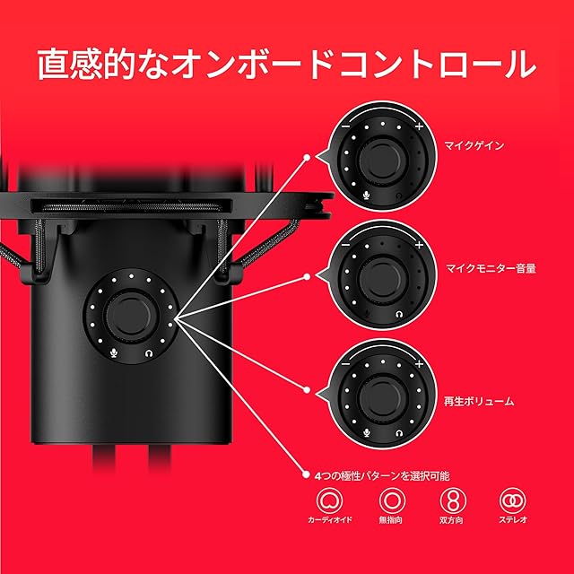 HyperX QuadCast 2 コンデンサーマイク USBマイク ストリーマー/コンテンツクリエーター/ゲーマー向け/PC Mac 2年間のメーカー保証 フロスト AN1D9AA