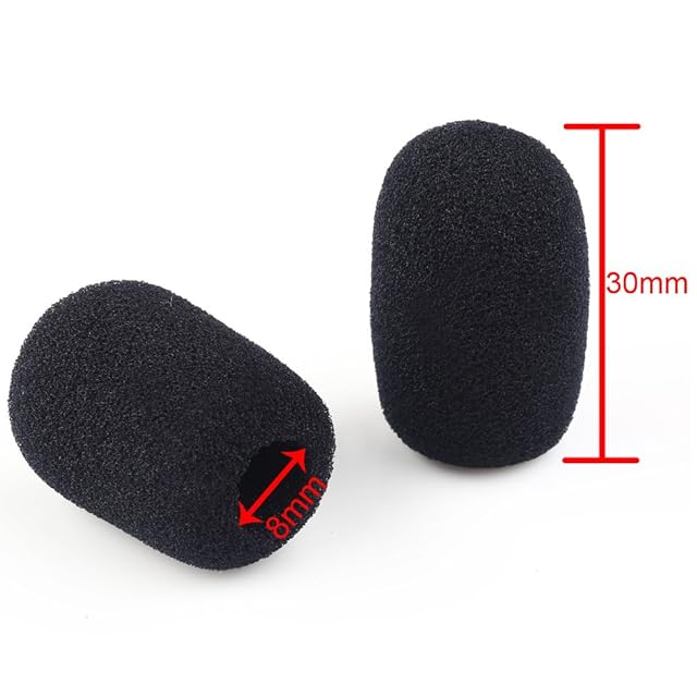 VERY100 ヘッドセット マイクスポンジ 交換用 サイズ30×8mm 10個セット インカム マイクカバー ヘッドホン 雑音防止 ブラック 風防 ウインドスクリーン