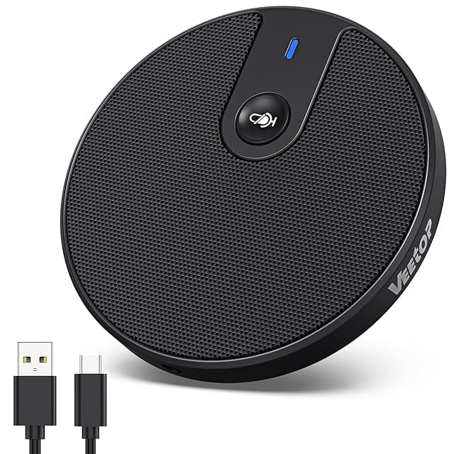 Veetop PCマイク 会議用マイク パソコンマイク 360˚全指向性 最大10人まで対応 ミュート機能 3.5㎜イヤホンジャック付き 卓上 コンパクト 軽量 web会議 Webチャット ゲーム実況 オンライン会議 Windows/mac/ZOOM/Youtube/Teams/Skypeなど対応 日本語説明書付き(スピーカーではありません)