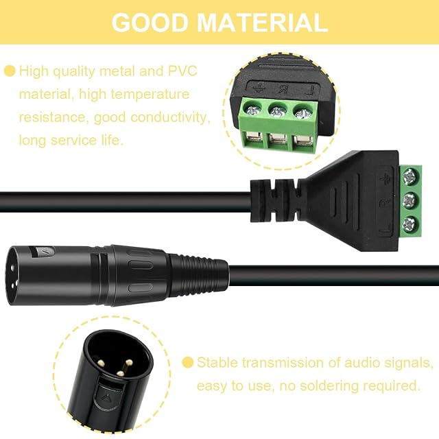 使いやすい: 3 ピン XLR からターミナルへの変換ケーブルは、しっかりとしっかりと接続され、優れた導電性を備えています。接続は簡単で、差し込むだけで使用でき、非常に便利です。