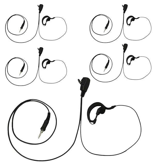 BLUE CENTURY 特定小電力 トランシーバー 【ブルーセンチュリー/アイコム/アルインコ/スタンダード/エフ・アール・シー/モトローラ 1ピンねじ込みプラグ (VOX非対応)】対応 3.5mm 防水 イヤホンマイク 予備イヤーパッド付属付 (耳掛けイヤホン型【W023】, 5本セット)