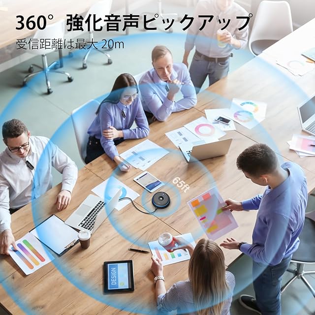 【360°強化された音声ピックアップ】5つのワイヤレスマイクによる360°音声ピックアップにより、あらゆる方向からの音声ピックアップが強化されます。 カスタマイズされた DSP アルゴリズムを使用した、リアルタイムの音声最適化と背景ノイズの低減。 声の大きさや距離の違いを補うために、声の音量のバランスが自動的に調整されます。 背景ノイズを排除する、独自にアップグレードされた VoiceIA テクノロジーを備えた会議スピーカーとマイク。2.4GHzテクノロジーをベースにしたUSBスピーカーマイクシステムは、クリアで高解像度の音声と強力な伝送能力を確実に提供します。作業範囲は最大20メートルであり、プレゼンテーションを行うためにスピーカーが自由に移動でき、距離・音量に関わらずしっかり伝わる