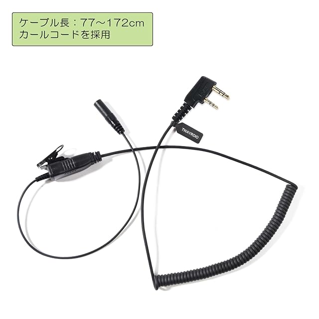 インカムの2ピンコネクターを1ピンΦ3.5モノラルジャックに変換するPTT/マイク付き変換ケーブルです。<br><br> Φ3.5mmインカム用イヤホンと併用する必要があります。<br><br> ケーブル長:77~172cm コードの一部分はカールコードを採用し、装着して動く時に邪魔にならないだけでなく、何かに引っかけてもショックを吸収して断線しにくくなっています。<br><br> <b>【対応機種】</b><br><br> <b>For KENWOOD:</b><br><br> UBZ-LP20, UBZ-LP27, UBZ-LP27R,<br><br> UBZ-LS20, UBZ-LS27R, UBZ-S20, UBZ-S27,<br><br> UBZ-EA20R, UBZ-BM20R, UBZ-BG20R,<br><br> UBZ-BH47FR, UBZ-S700, UTB-10<br><br> UBZ-LH9, UBZ-LH11, UBZ-LG9, UBZ-LG11,<br><br> UBZ-LM20, UBZ-LK20, UBZ-LJ20, UBZ-LH20,<br><br> TH-K20/K40<br><br> <b>For BAOFENG:</b><br><br> UV5R, UV5RA, UV5RB, UV5RC, UV5RD, UV5RE, UV5REPlus, UV82, UV8, UV8D, UVB5, UVB6,<br><br> A52, F8, F8+, BF480, 490, 320, V6, V7, V8, 658, 520, 530, 999, 888, 777, 666s, 777s, 888s, F8+, A5, 388A<br><br> <b>For HYT:</b><br><br> TC-286, 386, 2685, 3865, 6685, 278, 378, 388, 2100, 2088<br><br> <b>For WOUXUN:</b><br><br> KG-UV8D, UV6D, UVD1P, UV-899<br><br> <b>For PUXING:</b><br><br> PX-777, PX-888, PX-888K, PX-325, PX-358<br><br> <b>For Quansheng:</b><br><br> UV-K5 UV-K6 UV-K5(8) UV-5R PLUS