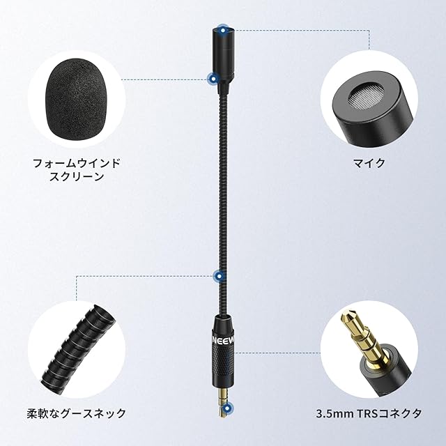 NEEWER 3.5mm TRSコンデンサーマイク 柔軟アーム付き 無指向性 無線マイク ミニマイク 手持ちマイク プレゼン/インタビュー/コンテンツクリエイター用 コンパチブル DJI無線マイク送信機 Rode Wireless GOII NEEWER CM28 CM7
