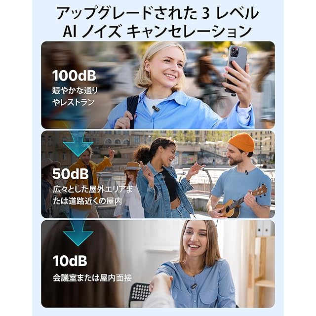 [3 段階のノイズキャンセリング] BOYA mini は DSP チップを内蔵しており、調整可能な 3 段階のノイズキャンセリング機能により、どこにいても鮮明でクリアな音声を維持できます。