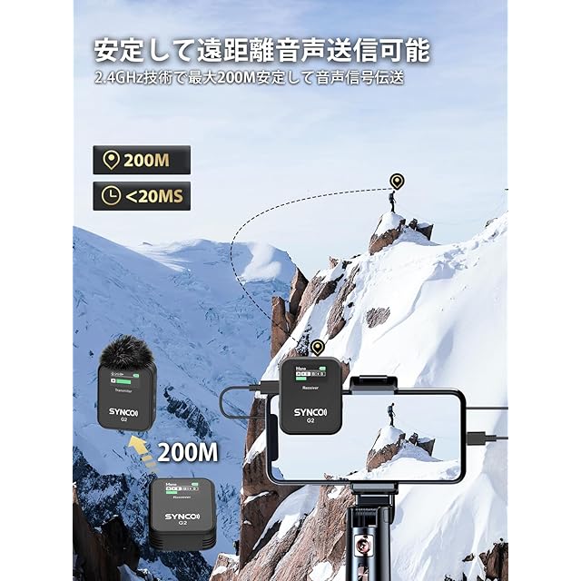 ♣【長距離信号伝送可能&操作簡単】2.4 GHz無線技術とSyncoderテクノロジーを搭載されているG2(A1)によって、信号の混乱をしやすいUHF帯から解放され、安定してかつ最大200mまでの安全な無線伝送範囲を実現しました。電源入れると、送信機と受信機が自動的にペアリングされます。手動ペアリングが必要な場合は、気軽に操作完了、使いやすくてブログや動画を配信するユーチューバーや仕事向けの方にはおすすめできるワイヤレスマイクです。
