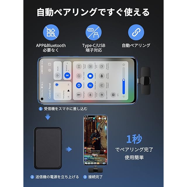 【簡単接続、複雑操作必要なくてもすぐ使える】レシーバーをスマホに差し込み、ライトが点灯すれば、接続完了です。BluetoothやAPPも不要でたった1秒で、送信機と受信機が自動的にペアリングになり、Gimpro MB1(C)は便利な作業体験を提供しているワイヤレスマイク。