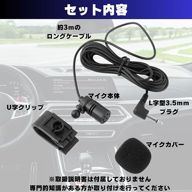 【サイズ】プラグ:3.5㎜、全長3m、マイク部分:2.5×1.5cm、クリップ部分:4.5×3×1.2cm 説明書および取り付けサービスは付属しませんので、専門業者にご相談ください。モニター環境によって商品の見え方が異なる場合があります。