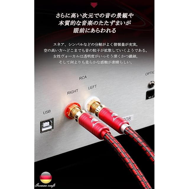 【安定性】アルミ合金シェルと純銅金メッキプラグを採用され、信号劣化に強く安定したデジタルオーディオ信号伝送を実現します。