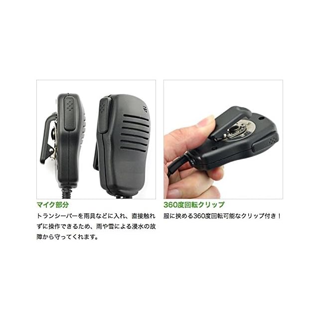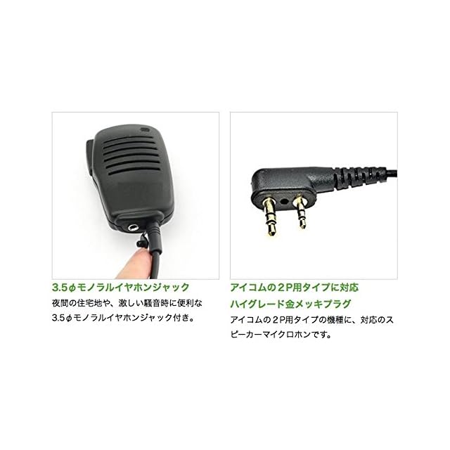 ・警備業の制服にぴったりの、スタイリッシなスピーカーマイクロホンです。 <br> <br> ・トランシーバーを雨具などに入れ、直接触れずに操作できるため、雨や雪による浸水の故障から守ってくれます。 <br> <br> ・夜間の住宅地や、激しい騒音時に便利な3.5φモノラルイヤホンジャック付き。 <br> <br> ・360度回転可能な服に挟める小型クリップ付きです。 <br> <br> アイコムの2ピンタイプの機種に、対応のスピーカーマイクロホンです <br> <br> ・新品マイクが この激安価格で 即納OK <br> <br> 対応機種 <br> IC-4120 IC-4120BT <br>IC-4110 IC-4110D <br>IC-4188D <br>IC-4100 IC-4100D <br> 他 <br> <br> 2ピンタイプのジャックですが接続部の形状がL型プラグのため、上記適合機種以外のトランシーバーに装着させることはできません。 <br> <br> ※こちらの商品は、VOX機能には対応しておりません。