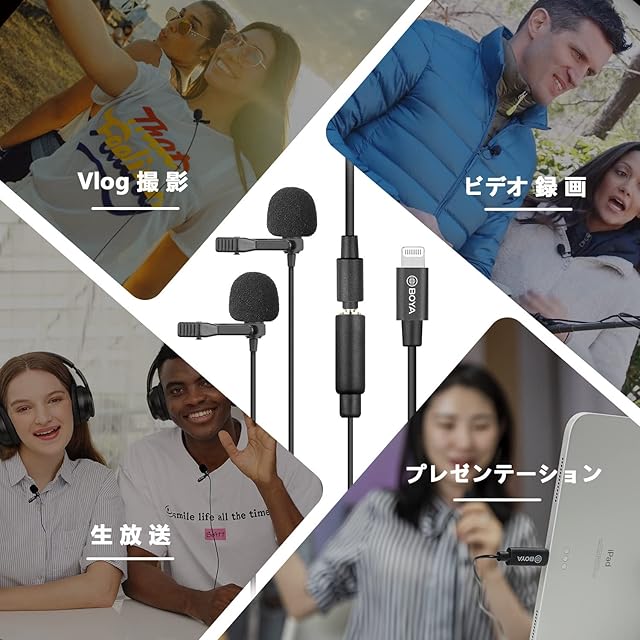【BY-M2D】BOYA BY-M2D は、iOS デバイス用デュアルヘッド全方向性デジタルラベリアマイクです。