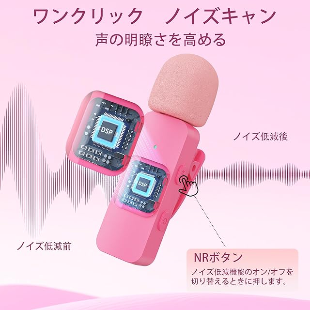 BOYA ピンマイク 2.4ghzワイヤレスマイク 瞬時接続 スマホ外付け ラベリアマイク プラグ&プレイ ノイズ軽減 クリップ式 無線マイク 360°集音 超ミニ mic 2人同時使用 軽量 vlog撮影/動画配信/生放送等に対応(ピンク,Lightning(TX+TX+RX))