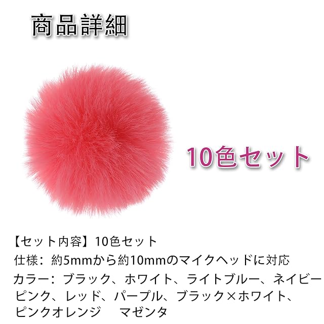 【セット内容】10色セット。 仕様:約5mmから約10mmのマイクヘッドに対応。 カラー:ブラック、ホワイト、ライトブルー、ネイビー、ピンク、レッド、パープル、ブラック×ホワイト、ピンクオレンジ、マゼンタ