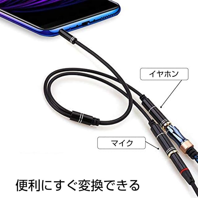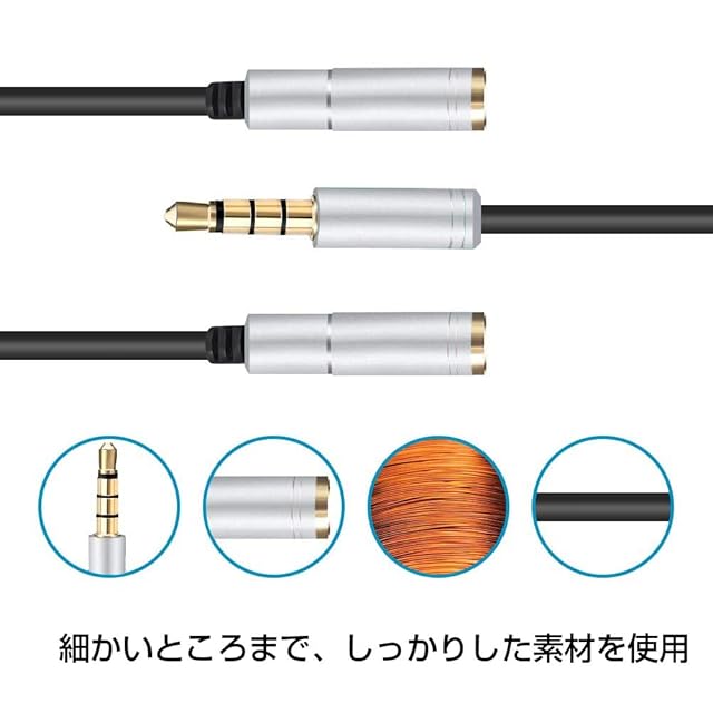 ゲーミングヘッドセット、PC等にスマホやタブレット付属の4極端子(CTIA規格)接続イヤホンマイクを接続できるケーブル