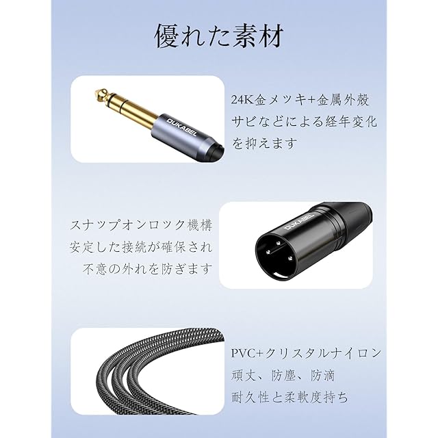 DuKabel 2.4M 6.35mm to xlrケーブル ステレオギターケーブル 6.35mm - XLR オス 3ピン オーディオ ケーブル マイク/ミキサー/アンプ/スピーカー/オーディオインターフェース等のデバイスに対応