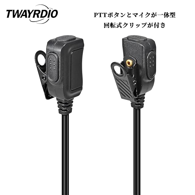 【PTTボタンとマイク】PTTボタンとマイクが一体型なので、トランシーバーを持たなくても、イヤホンマイクのPTTボタンを押すだけで交信可能です。回転式ベルトクリップが付いており、胸ポケットなどに止めることができます。
