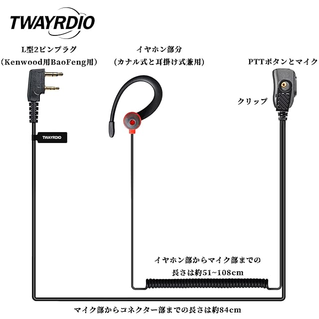 TWAYRDIO ケンウッド用 デミトス用 インカム イヤホン 特定小電力トランシーバー用 イヤホンマイク 2WAY カナル式 耳掛け式 2ピン対応 ubz-ls20 ubz-ea20r ubz-lk20 ubz-bm20r utb-10 ubz-lp20用 3サイズの予備イヤーピース各1個付