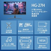 cocopar モニター 27インチ 180Hz/ 165Hz/ 144Hz/ 120Hz対応 1ms応答 HDMI2.0 DP1.4 VESA対応 2mm狭額縁 8mm薄型 FHD 1920×1080 非光沢VAパネル 射撃補助機能 角度調整可能 ゲーミングモニター/PCモニター FreeSync/HDR/OD/チルト/イヤホン/スピーカー内蔵 HG-27H