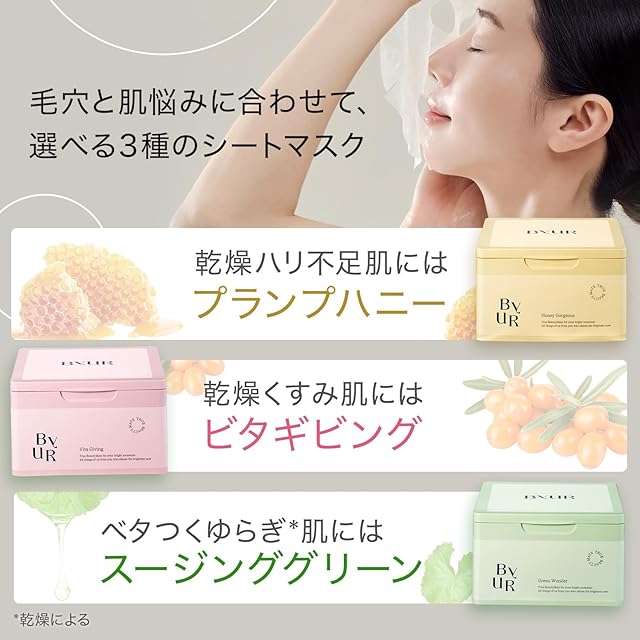 ByUR(バイユア) フェイスパック シートマスク フェイスマスク 大容量タイプ 30枚 毛穴 肌荒れ デイリーアクアセラムマスク (スージンググリーン)