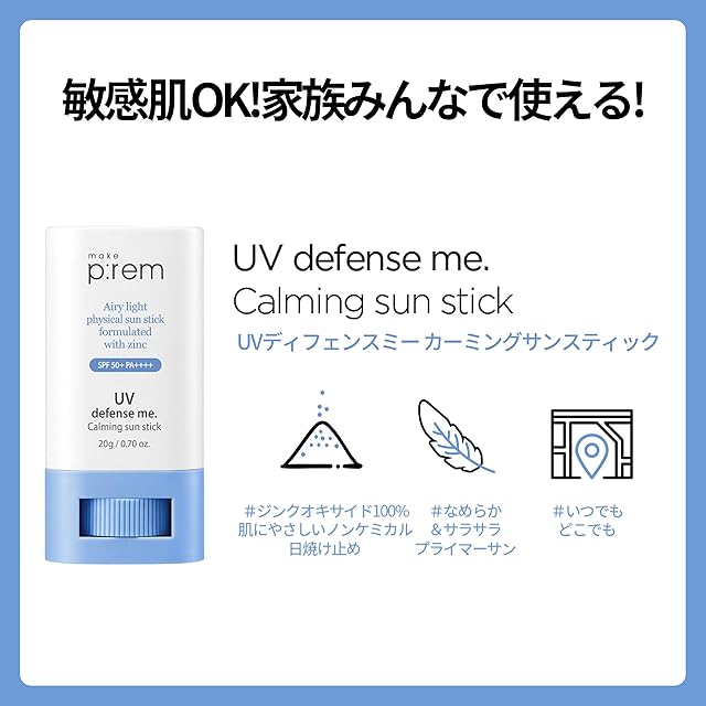 make prem メイクプレム UVディフェンスミーカーミングサンスティック 20g SPF50+ PA++++ 日焼け止めスティック 顔 全身 ツヤ肌下地 UV下地 化粧下地 サラサラ 韓国