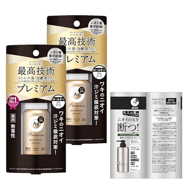エージーデオ24 【まとめ買い】 プレミアムデオドラントロールオン(無香性)40mL×2個+おまけ ニオイ 殺菌 汗臭 ワキ 汗ジミ 加齢臭 制汗剤 デオドラント