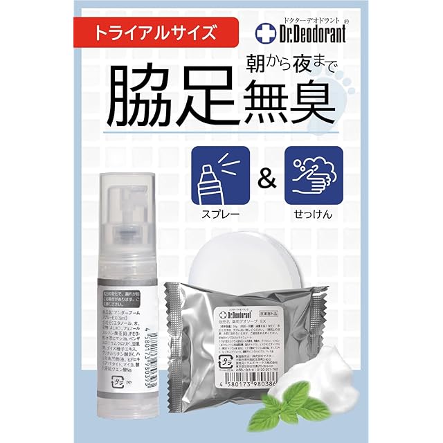 ※スプレー容器はエアレスタイプで使用するたびに、底が上に上がっていく仕様になっております。 本気でニオイ対策したい人の為に開発された専門ブランド「ドクターデオドラント」のパーフェクトデオドラントセットEX(ミョウバンスプレー EX、薬用ミョウバンせっけん EX)はワキ・足の「ニオイが気にならない」が超持続! ミョウバンは安全性の試験項目を全て通過した不純物の無い化粧品グレードを使用。成分は体臭の専門医との共同開発なので、一番効果のある濃度で配合。【薬用ミョウバンせっけんEXはリニューアル版となります。成分、パッケージ等一部変更となっておりますが、消臭効果は変わりません】