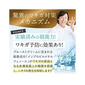 悩み続けたワキガに ・満足度93.8%※1 ・99.9%殺菌※2 ・3冠達成※3 プルーストクリーム-PROUST CREAM- 医薬部外品のワキガ対策 “圧倒的、無臭。“ ※1 2018年12月~2019年6月 第1回満足度お声調査結果 ※2 フェースサーベイ株式会社調べ(2019年3月) 黄色ブドウ球菌への殺菌試験 人に対して効果を保証するものではありません。 ※3 本商品 ※a 日本コンシューマリサーチ デオドラントブランドイメージ調査(2020年12月) プルーストクリームが医学専門誌に掲載されました 医学総合月刊誌『医学と薬学』は豊富な医学・薬学の情報が掲載されており、 大学・病院など医療関係者に広く読まれている伝統 ある雑誌です。 『プルーストクリーム』は第三者機関による黄色ブドウ球菌殺菌効力試験を行い、 その殺菌力が実証され、結果が『医学と薬学』に掲載されています。 数々のTVに出演するニオイの専門家も大絶賛! 「白残りもないのにしっかり汗のニオイを抑えてくれます。 銀イオンのスプレーでさんざんな目に遭ったシャツの変色も心配しないで済むのがいい ですね。」 プルーストクリームの予防効果を使用有無で、ニオイチェッカー を使って実験してみました! 未使用時:ニオイレベルが納豆と同程度... 塗布時:311→045 ニオイレベルがこんなに!※個人差があります。 変えたいのは、ニオイの『原因』 現役医師もコメントするクリームが、誕生しました。 驚異のワキガ対策メカニズム、5つのポイント POINT1:ワキガ対策! 爽やかな無臭を実現! 有効成分が、ワキガの原因となる汗と細菌を対策!香料などでごまかさず科学的にアプローチします!外出時などとっさにニオイや汗が気になる時にもぜひ使用してください! ※本商品 POINT2:実験済みの殺菌力! ワキガ予防に効果あり! プルーストクリームに含まれる殺菌成分「イソプロピルメチルダフェノール」がワキガの原因となる皮膚表面上の細菌を殺菌し、ニオイ の発生を抑制します! POINT3:さらすべっ!べたつかない サラサラの使い心地! ポリマー成分により、テクスチャーが良く、塗った直後でもべたつきません! POINT4:汗を対策! ワキ染み、もう気にしない! プルーストクリームに含まれる有効成分「クロルヒドロキシアルミニウム」が発汗を抑制!汗によってクリームが流れ 落ちることも防ぎ、長時間の効果を実現しました! POINT5:選ばれる持続力! 24時間でこの結果! プルーストクリームの殺菌力と持続力を実験にて確認しました。科学的にニオイの原因となる細菌を殺菌いたします。 プルーストクリームの殺菌力とその持続力を実験で確認。 実験方法 STEP1:プルーストクリームと黄色ブドウ球菌を混合する。 STEP2:混合後、1分~72時間後までの各時間で生菌数を確認する。 プルーストクリームにより菌が殺菌され、その殺菌効果が72時間持続することを確認した。 ※フェースサーベイ株式会社調べ(2019年3月) 黄色ブドウ球菌への殺菌試験 人に対して効果を保証するものではありません 毎日使っていただきたいから、肌にやさしい処方。 合成色素、合成香料、アルコール、すべて無添加! クリーンな毎日を新提案! 薬用プルーストクリームの”圧倒的無臭”をお確かめください。※本商品