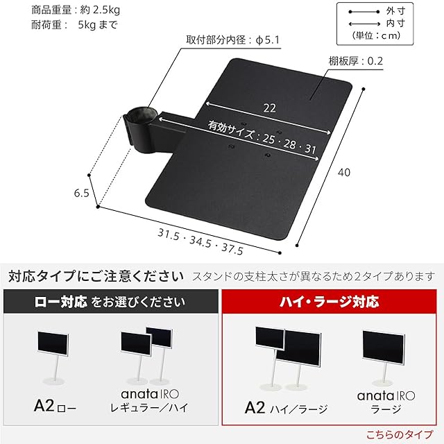 【サイズ】耐荷重:約5kg・幅40cmx奥行31.5・34.5・37.5cmx高さ6.5cm (棚板厚さ0.2cm)