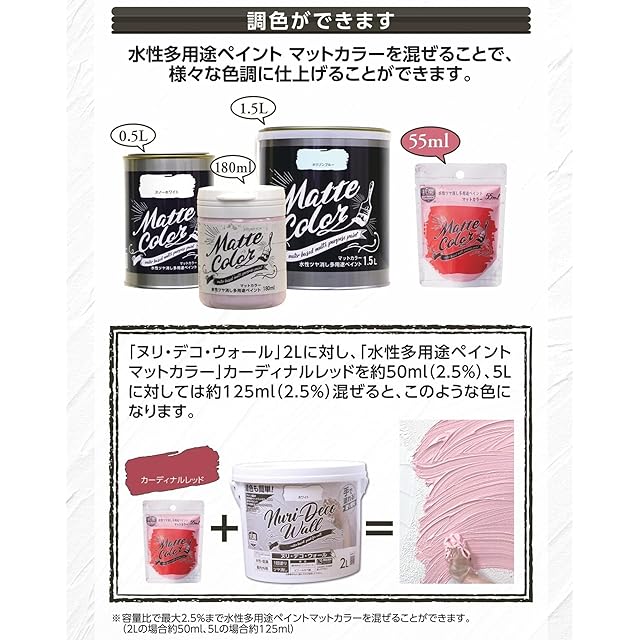 アサヒペン水性多用途ペイントマットカラー各色を混ぜ合わせることで様々な色調に仕上がります。