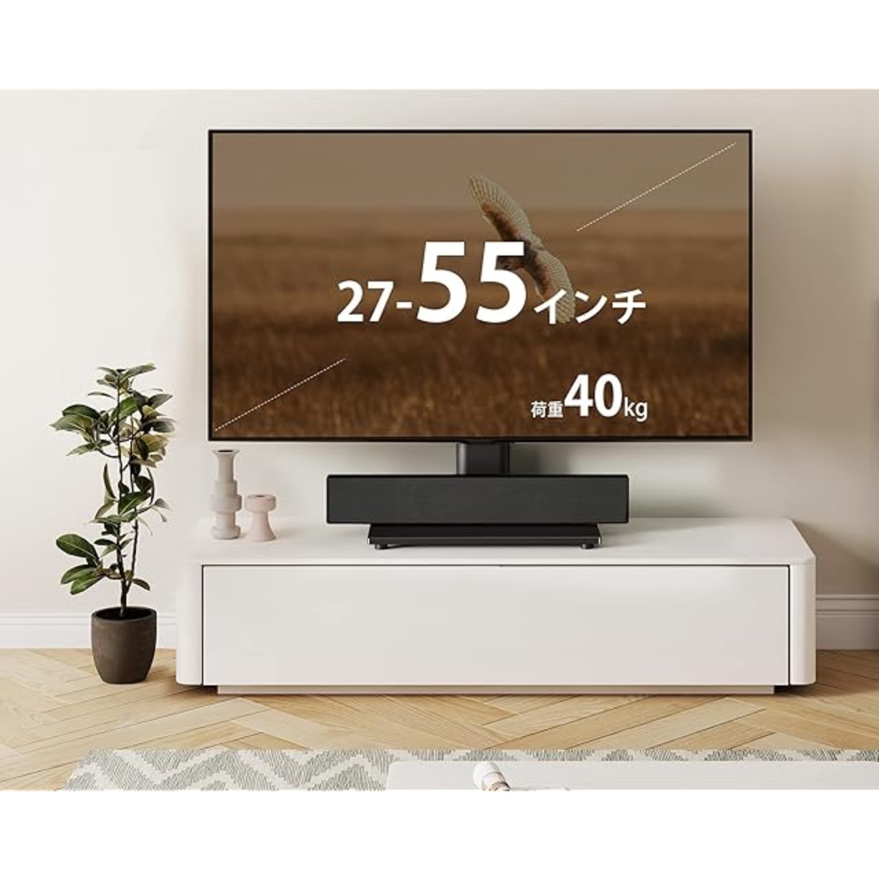 【空間感創り】テレビ台のスペースを節約し、狭いテレビボードでも大型テレビが設置できます。また、高さを上げることにより、サウンドバーをテレビの下に設置することも可能になります。さらに、より近く壁寄せるし、安心感もアップします。