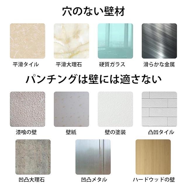 【適用表面】粘着フックは、滑らかなタイル、滑らかな大理石、滑らかな硬質ガラス、滑らかな金属表面に適しています。つや消しタイル、凹凸タイル、漆喰壁、レンガ壁、木壁、塗装壁、壁紙表面には適していません。