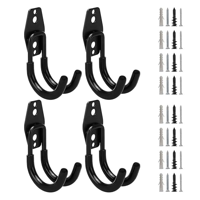 【使いやすく、インストールも簡単】ネジを使ってフックをねじ固定するだけです,保管が必要なアイテムを吊るして保管する。シャベル、バイク、椅子、ほうきなどの大きな道具はすべてガレージに吊るすことができます。
