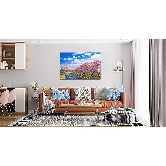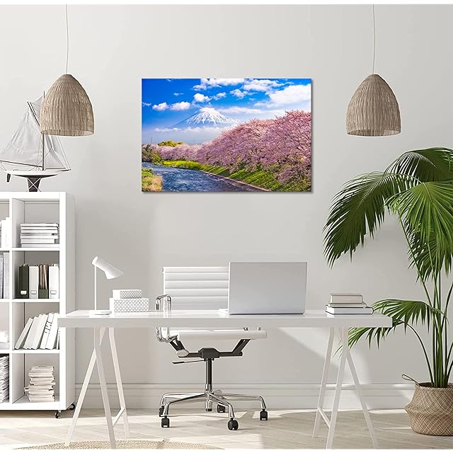 アートパネル 富士山 桜花 ポスター 絵 自然 絵画 インテリア 壁掛け 風水 寝室 絵 緑 木枠付きの完成品 (40x60cm)