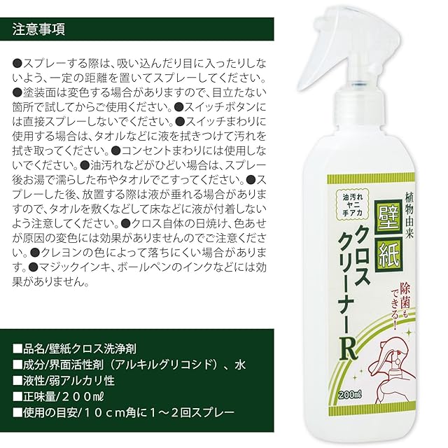 コモライフ 植物由来 壁紙クロスクリーナーR 200ml 壁紙 クリーナー 洗浄 消臭 除菌 ウイルス 掃除 日本製