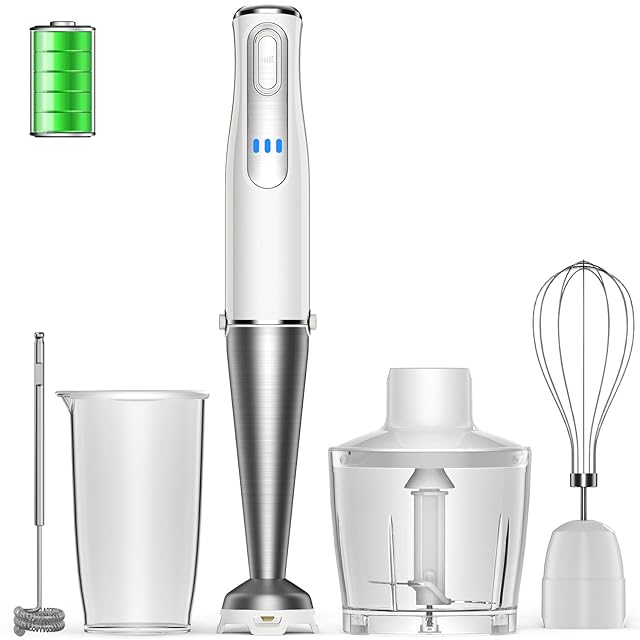【1台7役、ハンドブレンダーだけでなく...】HAGOOGI ハンドブレンダーの一番の魅力はアタッチメントの種類の豊富さによって、料理初心者でも使いやすく、料理のレパートリーを増やせて献立が豊かになります。作りたいメニューによって、ボタンを押すだけの簡単操作で必要なアタッチメントが変えれば、魔法のように「ハンドブレンダー」、「ブレンダー」、「ハンドミキサー」、「ミキサー」、「フードプロセッサー」、「泡立て器」様々な調理器具に変身する!製品仕様:充電時「DC5V/2A」を確認してから充電してください。使い方:電源ボタンや無段変速スイッチを同時に押す。