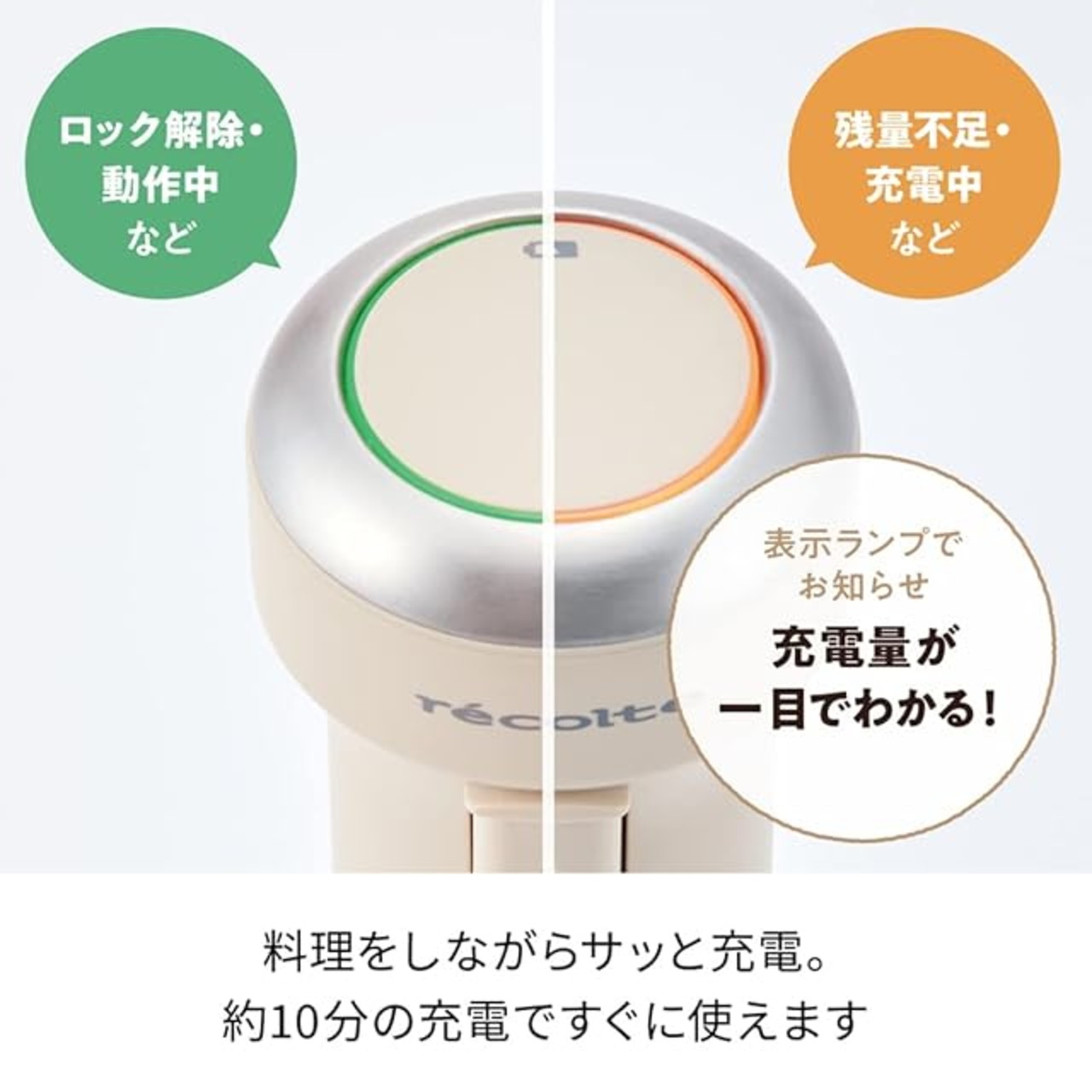 recolte レコルト コードレス ハンディブレンダー ハンドブレンダー 小型 コンパクト USB充電式 離乳食 スムージー ポタージュ USB充電 鍋を傷つけない 自立スタンド付 洗いやすい クリームホワイト RHB-2(W)