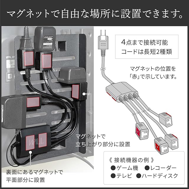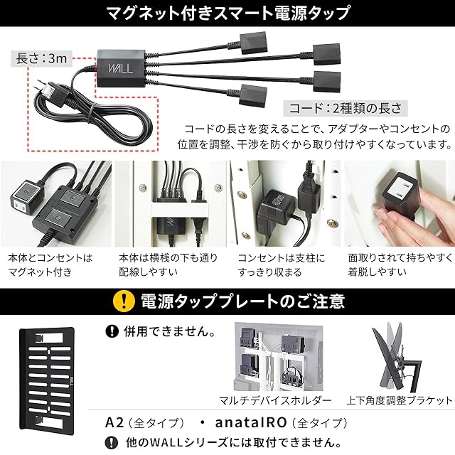 WALLを美しく設置する。大人気オプションセット!マグネット付きスマート電源タップとコードカバーと電源プレートの3点セットで、面倒な配線をすべてスマート。