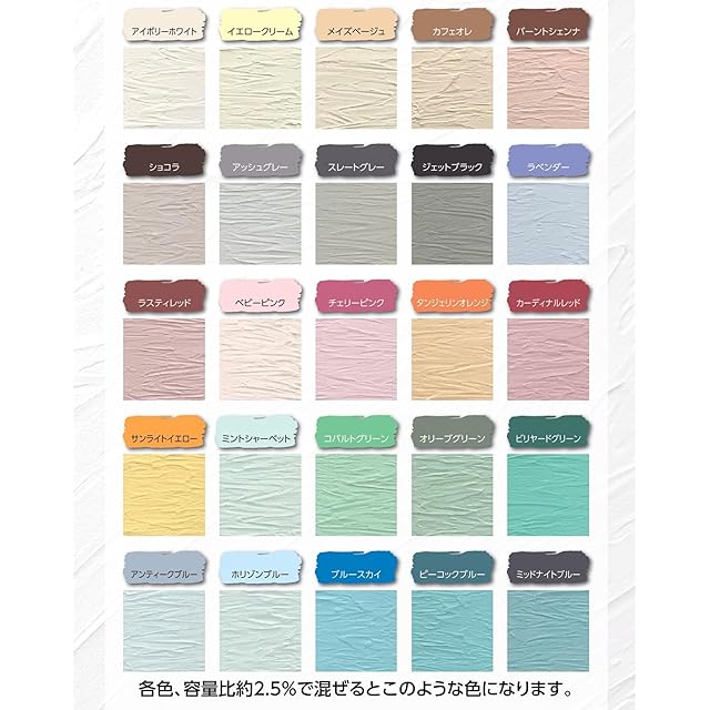 アサヒペン水性多用途ペイントマットカラー各色を混ぜ合わせることで様々な色調に仕上がります。