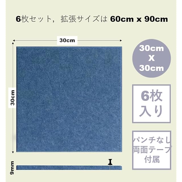 「壁に貼る コルクボード 900x600」 フェルトボード DIYコルクボード 大型 おしゃれ 大きい 掲示板 こるくぼーど大型 特大 室内用 オフィス 業務用 事務用品 収納 学校 - 海洋ブルー