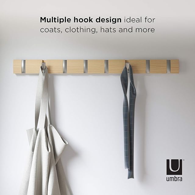 【公式】umbra アンブラ 壁掛けフック ウォールハンガー 収納 フック 木製 インテリア モダン カジュアル 整理 整頓 省スペース 8連 FLIP HOOK 2318858390 ナチュラル