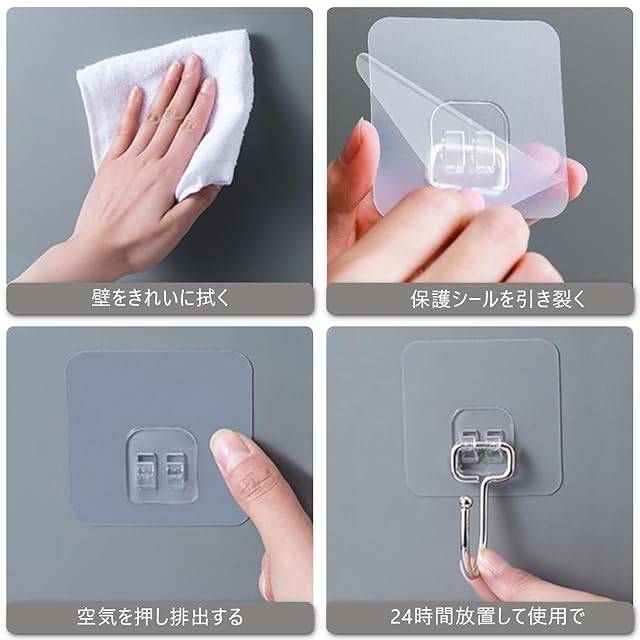 【穴開けない・貼り付け跡なし】粘着シールとグルームが透明で、よくに使用環境に溶け込めます。穴を開ける必要がないので、貼り付け面に傷をつけない、便利で実用的な壁掛フックです。