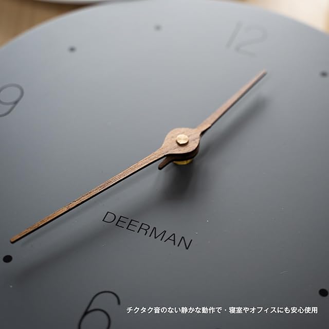 【静音・高精度ムーブメント】 電池式ムーブメントを採用し、電波時計のように電波状況に左右されず、常に正確な時間を保ちます。静音設計なので、寝室や書斎、オフィスなど静かな空間に最適です。