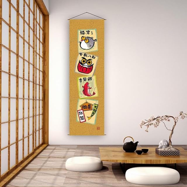 【縁起の良いデザイン】 赤富士、鯛、桜、富士山、虎、龍などの縁起物が描かれ、インテリアに幸運を呼び込みむ、家の中に幸福をもたらし、縁起の良い空間を演出する