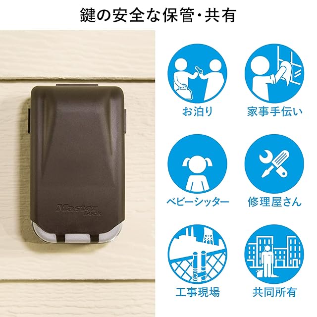 【屋外使用に安心】・玄関脇の壁などに固定して設置するタイプ。・耐久性が高く頑丈なメタル構造の本体。・こじ開けに強いハイセキュリティ仕様。・庫内にほこりや雨が入りにくいカバー付き(完全防水ではありません)。