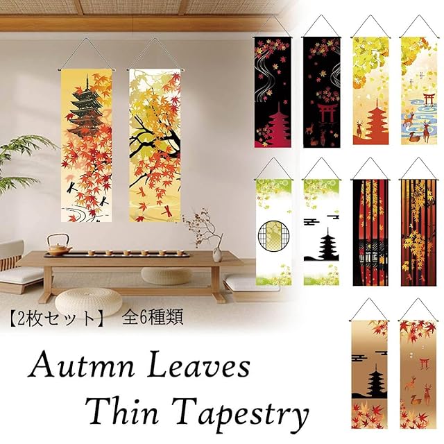 タペストリー 掛け軸 紅葉 もみじ いちょう 落ち葉 神社 山道 鳥居 秋 季節 行楽 景色 山 森 赤 風景 和風 癒し 掛け軸 飾り 壁掛け 壁面 吊るし 飾り ミニ 旗 コンパクト 室内用 おしゃれ アパート マンション インテリア ウォールステッカー