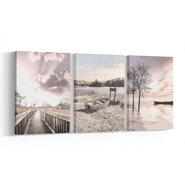 LAKELUUYAA 海景帆布印刷アートインテリアデコレーション北欧スタイル木製橋と干草花のビーチポスターおしゃれな壁掛け絵画キャンバスアートリビングルーム装飾用 (A, 30x40cm, ラップキャンバス)