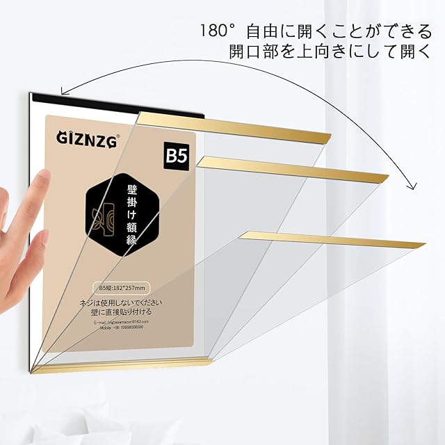 Giznzg 賞状額縁A4 壁掛け 額縁 賞状用 磁気アクリルディスプレイフレーム 色紙額入替アートパネル褒章 樹脂製フレーム 縦横通用 高耐久 軽量 180°簡単に開閉でき おしゃれ 企業、学校、幼稚園、家庭、美容院、オペラハウスに適しています (ゴールド, B5-縦型)